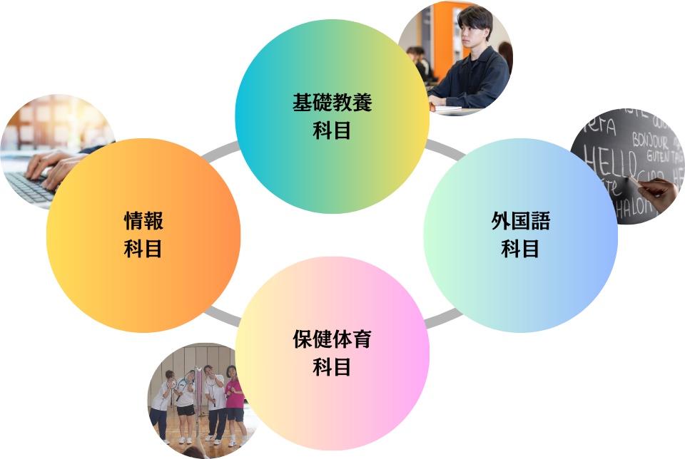 基礎教養科目、外国語科目、保健体育科目、情報科目をバランスよく配し、高い人間性を持つ、豊かな女性の育成を目指します。