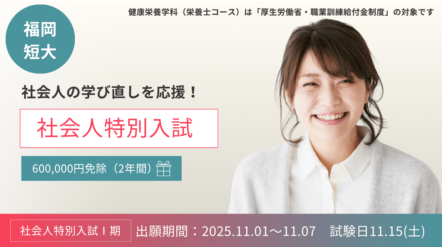 福岡短期大学※ 健康栄養学科「社会人入試」実施のご案内
