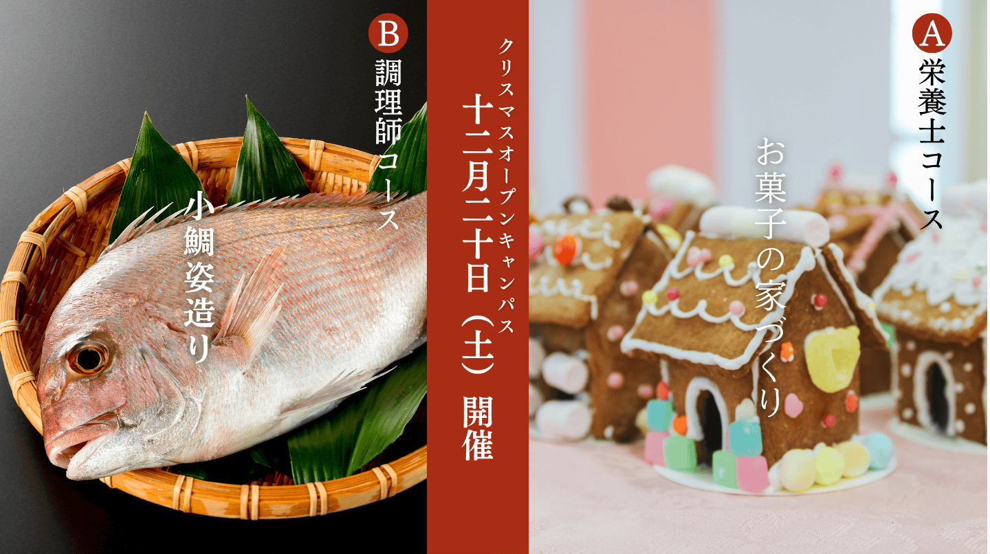 「料理の仕事がしたい」高校生に向けた特別レッスン!日本料理講師による少人数レッスンと、栄養士コース「お菓子の家づくり」体験を同日実施!本学では、12月20日(土)に今年最後のオープンキャンパスを開催いたします。今回のオープンキャンパスでは、調理や栄養の分野に興味を持つ高校生に向けて、2つの特別プログラムを実施します。