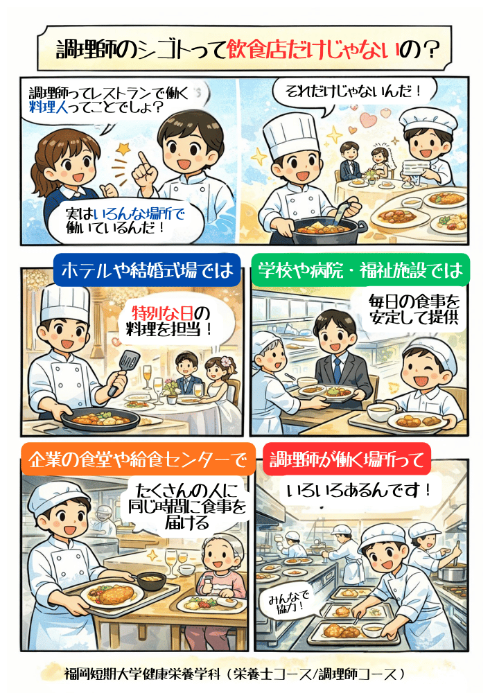 「調理師=レストランの料理人」多くの人が、まずそう思い浮かべるのではないでしょうか。
