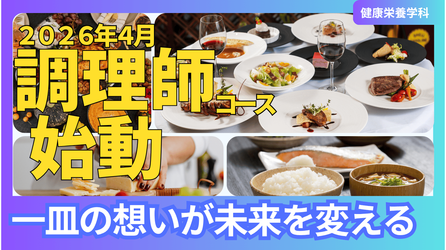 調理師コース 4月からスタート2026年4月より「健康栄養学科 調理師コース」を新たに開設いたします。