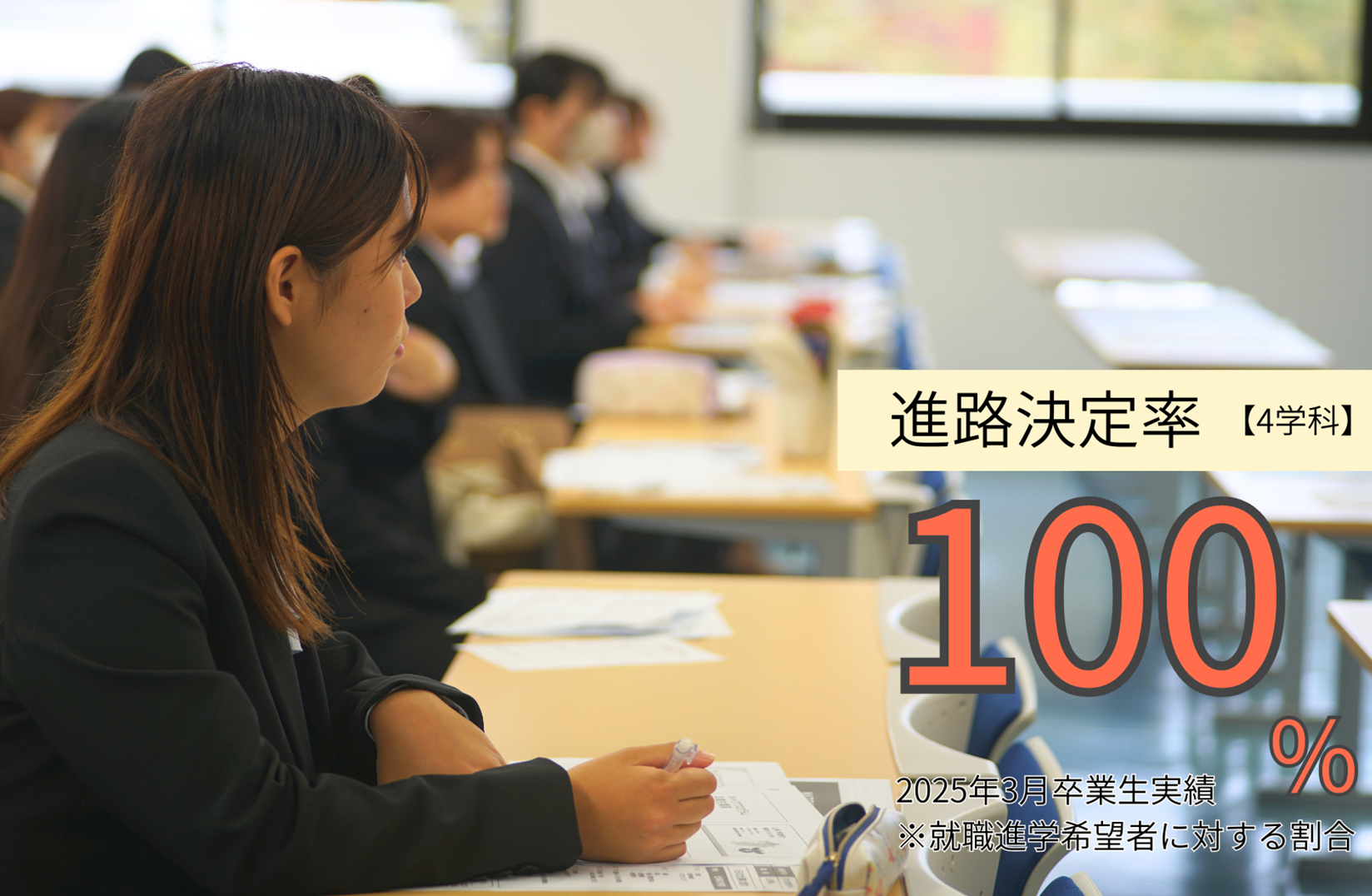 進路は2年間の学びの成果の一つです。就職や進学など、一人ひとりが目指す目標に向けて取り組んだ結果、2025年3月卒業生の進路決定先への満足度調査では96%を達成しました。